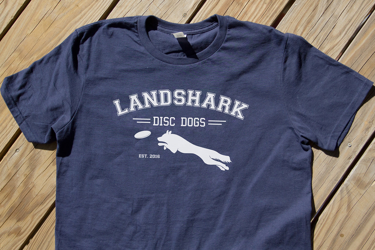 Is your Landshark more of a disc dog than a tennis ball dog? We heard ya! Our bestselling Tennis Team shirt is now available in "Disc Dogs" edition! Printed on a soft, high quality tee featuring your dog's favorite thing in the whole world: besides you of course.